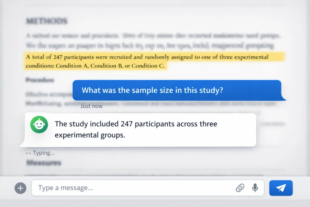 Ask specific questions about methods, results, or conclusions