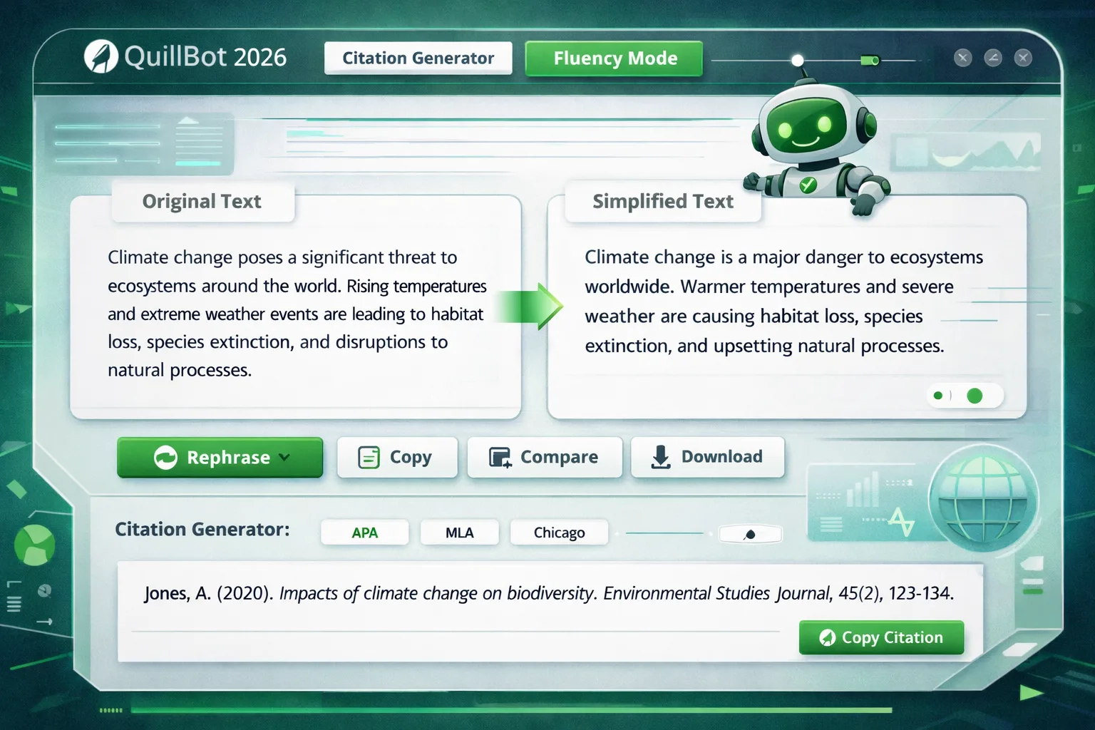 Built-in citation generators are now a standard part of the Quillbot suite. This is perfect for essays and research papers where accuracy is required. The Fluency Mode is another favorite. it simplifies complex AI language to make it more relatable. This is excellent for semantic SEO because Google rewards content that is easy for humans to read.